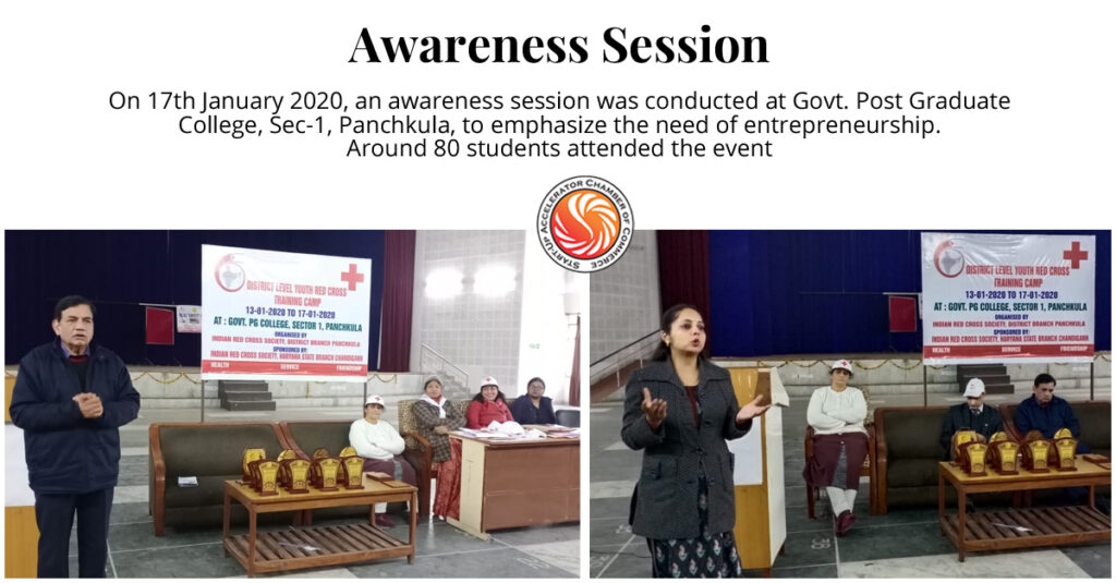 On 17th January 2020, an awareness session was conducted at Govt. Post Graduate College, Sec-1, Panchkula, to emphasize the need of entrepreneurship.