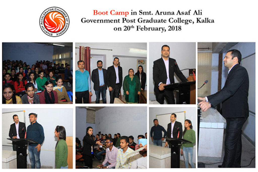 On 20th February 2018, boot camp to sensitize students on entrepreneurship and facilities in Startup Incubator cum Centre of Excellence was conducted by Adv Ekant Agarwal and Ms. Isha Handa for students of Smt. Aruna Asaf Ali Government Post Graduate College, Kalka at their campus.