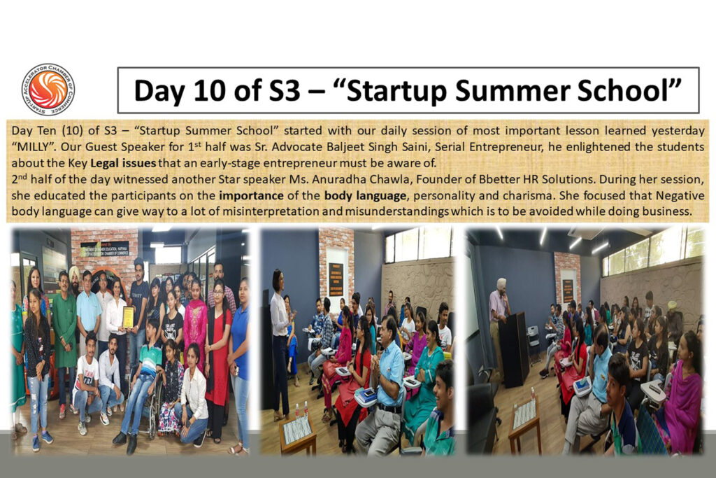 Day Ten (10) of S3 – “Startup Summer School” started with our daily session of most important lesson learned yesterday “MILLY”. Our Guest Speaker for 1st half was Sr. Advocate Baljeet Singh Saini, Serial Entrepreneur, he enlightened the students about the Key Legal issues that an early-stage entrepreneur must be aware of.