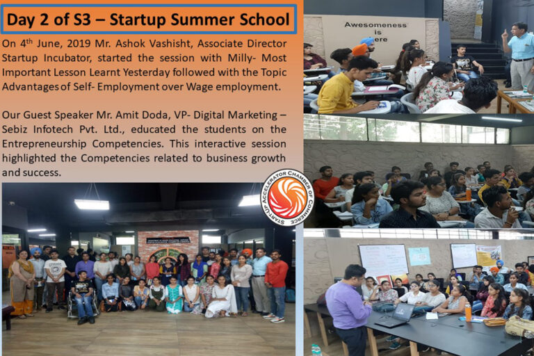 On 4th June, 2019 Mr. Ashok Vashisht, Associate Director Startup Incubator, started the session with Milly- Most Important Lesson Learnt Yesterday followed with the Topic Advantages of Self- Employment over Wage employment.