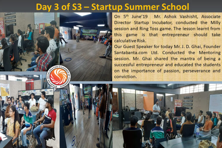 On 5th June’19 Mr. Ashok Vashisht, Associate Director Startup Incubator, conducted the Milly session and Ring Toss game. The lesson learnt from this game is that entrepreneur should take calculative Risk.