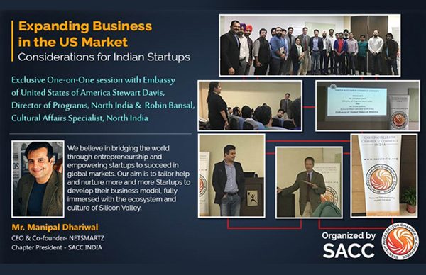 An interactive session exhibiting the possibilities of expanding business in the US markets for Indian startups was held with Steward Davis from Embassy of the United States of America, Robin Bansal, Cultural Affairs Specialist, North India and Manipal Dhariwal. The dignitaries from Netsmartz and SACC were invited for the 8th Annual Global Entrepreneur Summit in Hyderabad. “Women First, Prosperity for All” is the theme of the summit to support women entrepreneurs.