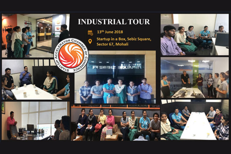 On 13th June 2018, Students enrolled with Startup Incubator cum Centre of Excellence were taken to Sebiz Square, Plot No. C6, Sector 67, Mohali for an Industrial Tour. In the tour students interacted with more than 10 entrepreneurs and CEOs of different companies which gave them high end exposure on How an enterprise works and what are the real aspects of being an entrepreneur.