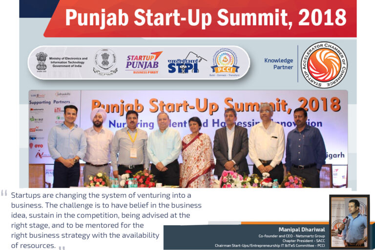 Punjab Start-Up Summit 2018, organized by Punjab Chamber of Commerce and Industries (PCCI), revealed number of initiatives of the Punjab government to boost entrepreneurship and provide infrastructure to support the growth of startups in the entire state. With young entrepreneurs preferring Mohali to setup the infrastructure for their startup, out of the five incubators in the state, three are located in Mohali. SACC being the knowledge partner of PCCI, it will foster the development of an ecosystem for new ventures and work in close tandem with government of Punjab and to make concerted efforts to plug the gaps in the entrepreneurial ecosystem. To read what Vini Mahajan, IAS, Additional Chief Secretary, Industries & Commerce, GoP and Manipal Dhariwal, Chairman Start-Ups/Entrepreneurship & IT & ITeS Committee, PCCI, Co-founder & CEO at Netsmartz, and President, Startup Accelerator Chamber of Commerce (SACC) said in the event, visit here:https://bit.ly/2NolaZe