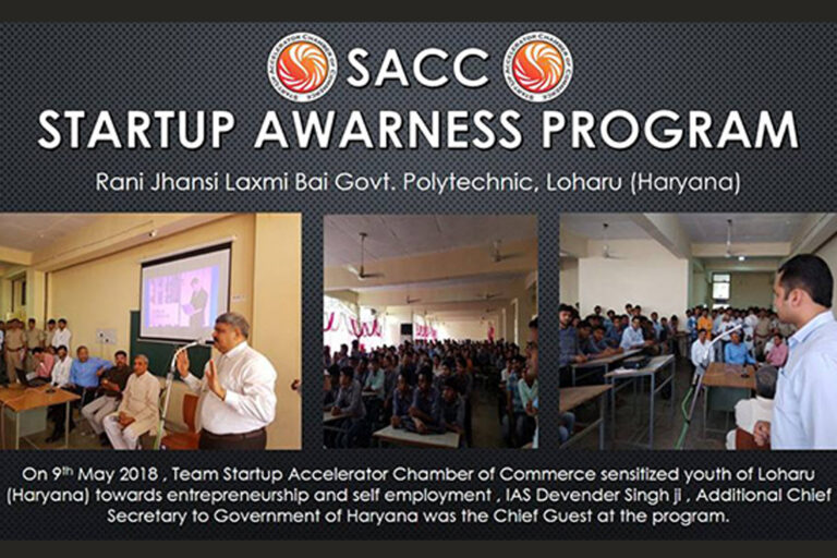 On 9th May 2018, Start-up-Accelerator Chamber of Commerce conducted START-UP AWARENESS PROGRAMME for the students of Government Polytechnic Loharu (Haryana), IAS Devender Singh ji Additional Chief Secretary to Government of Haryana was the Chief Guest at the Program.