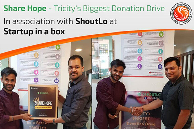 Share Hope – Tricity Biggest donation drive in association with Shoutlo.com at Startup in a box.