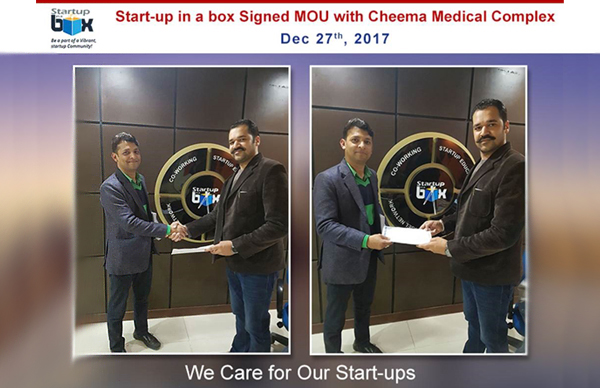 On 27th Dec 2017 Ekant Agarwal Executive Director Start-up in a box “most professionally managed co-working space of the town” today signed MOU with Cheema Medical Complex, Phase 4, Mohali to provide medical services at discounted prices to their start-ups, to meet medical emergencies and to educate start-ups on health related issues by doctors from CMC.