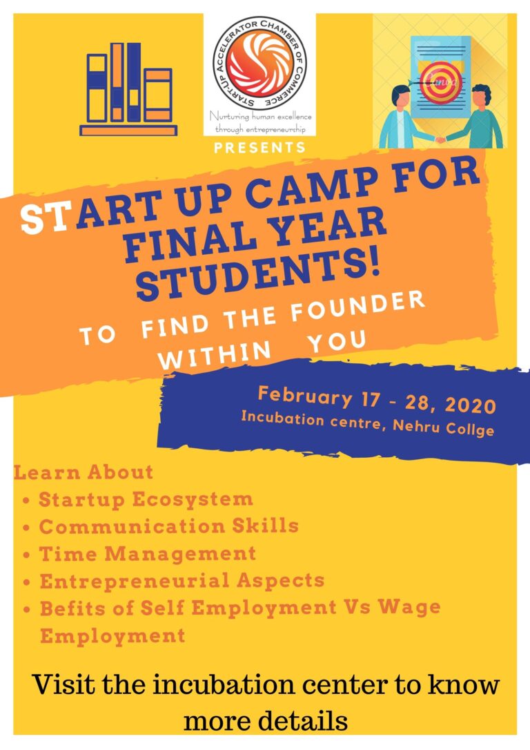 With an aim to boost startup culture & promote entrepreneurship, Startup Incubator cum centre of excellence is organising a 10 Day camp for the final year students. During the camp students will cover various aspects about start-up culture & entrepreneurship. They will also be discussing about their startup ideas & will also be engaged in various interactive sessions.