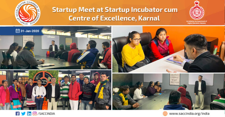 The Department Of Higher Education, Haryana and SACC India profoundly presents an insight into another remarkable Startup Meet organized at Startup Incubator COE Karnal on January 31st, 2020. Around 30 students attended the Meetup that emphasized encouraging entrepreneurship and self-employment.