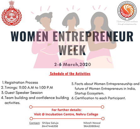 From 2nd march till 6th March, We are celebrating Women week in our centre of excellence where female students from Pt. Jawaharlal Nehru College & Government College for Women will be participating in this and learning about Entrepreneurship, team building activities and attending the guest speaker sessions.